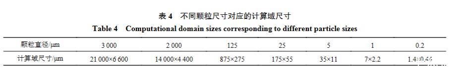 表4不同顆粒尺寸對(duì)應(yīng)的計(jì)算域尺寸