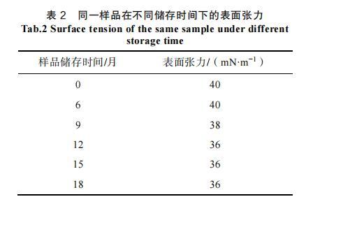 表2同一樣品在不同儲存時間下的表面張力