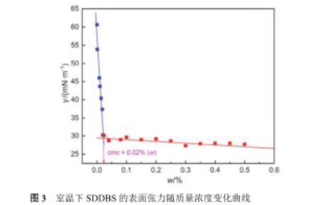 圖3室溫下SDDBS的表面張力隨質量濃度變化曲線