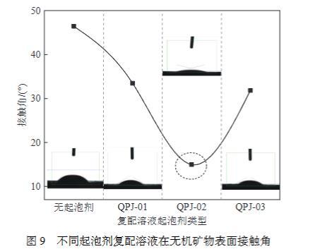 圖9不同起泡劑復配溶液在無機礦物表面接觸角