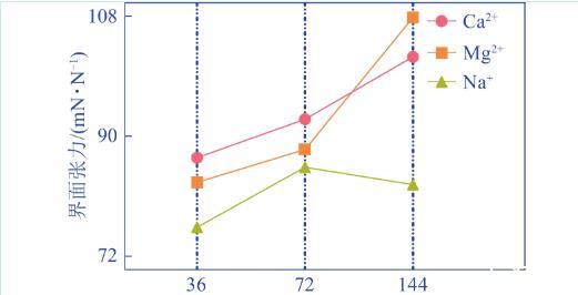 礦井水質硬度越高,泡沫體系的界面張力越大,高硬水條件下鈣、鎂泡沫體系的界面張力平均值大于100 mN/N,該條件下的界面厚度最薄,抗干擾能力最低,泡沫穩定性最差。