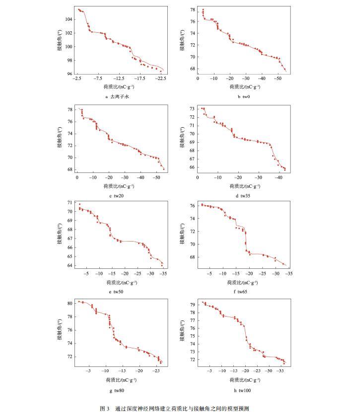 圖3 通過深度神經網絡建立荷質比與接觸角之間的模型預測