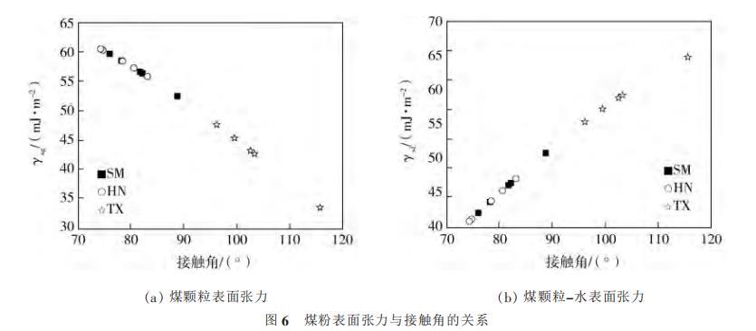 圖6煤粉表面張力與接觸角的關(guān)系