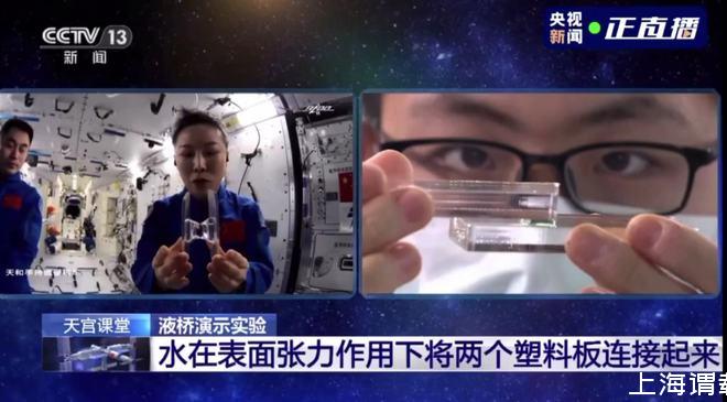 天宮課堂航天員液橋演示實驗展示表面張力的神奇作用