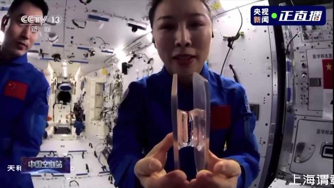首先,王亞平拿出了兩塊透明的液橋板。
