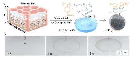 圖1受皮膚分化過程啟發(fā)的水-水鋪展與聚電解質膜制備機制