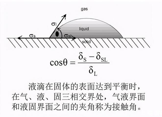 鋪展過程:表示在固液界面取代了氣固界面的同時(shí),氣液界面也擴(kuò)大了同樣的面積。