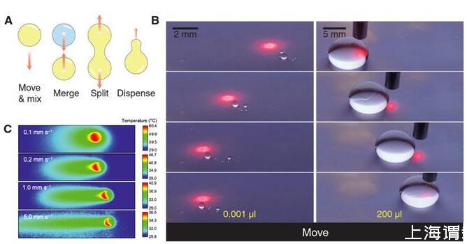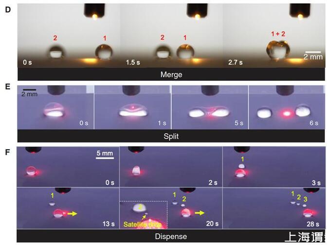 總結(jié):在單束光的作用下,光電微流控平臺可以作為一只“魔力”的防潤濕的手來移動、切割、融合和分配任意液體,遙控且無損的精確操控液滴不僅在醫(yī)療檢測和生化分析等領(lǐng)域具有重要意義,而且在軟體機(jī)器人、3D打印、微流控加工制造等領(lǐng)域具有廣闊應(yīng)用場景。