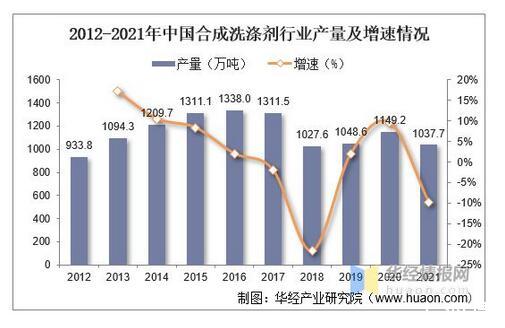 2012-2021年中國合成洗滌劑行業產量及增速情況