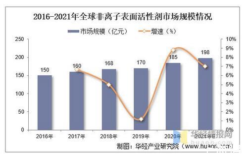 2016-2021年全球非離子表面活性劑市場規模情況