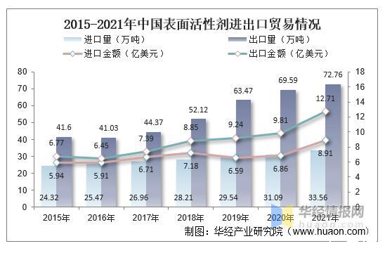 2015-2021年中國表面活性劑進出口貿易情況