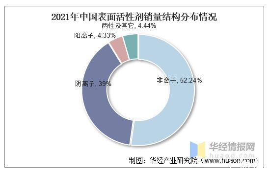 2021年中國表面活性劑產量結構分布情況