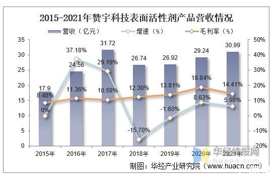 2015-2021年贊宇科技表面活性劑產品營收情況