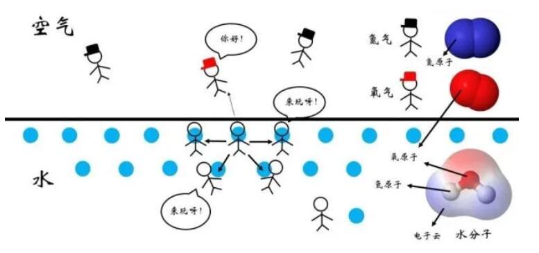 然而,這種關系的穩定程度是與雙方分子的種類有關的。如圖4所示,對于水-空氣的界面而言,處于表面的水分子周圍的分子種類較為豐富,除了其他水分子,還有空氣中的氧氣、氮氣等分子。