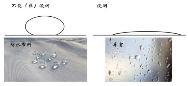 浸潤現象,這個詞可能大家比較陌生,但是對應的物理現象非常常見。比如下圖所示的防水衣服以及公交車車窗上的水滴就是非浸潤和浸潤代表性的場景。