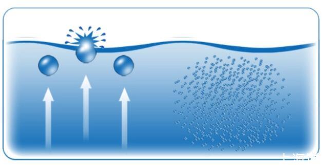 理論上氣泡形成消耗能量依賴于界面面積,界面面積決定于氣泡表面張力。直徑小于25微米的小氣泡表面剛性強(qiáng),類似于高壓氣球,不容易破裂。數(shù)毫米直徑的大氣泡表面比較柔軟,很容易變形破裂。大氣泡的浮力比較大很容易上升到液面。Stokes公式R=ρgd2/18μ(ρ=密度,g=重力加速度,d=氣泡直徑,μ=粘滯度)可計(jì)算氣泡上浮速度。氣泡上漂浮速度和氣泡直徑的平方成正比,這種關(guān)系只使用于小氣泡。直徑大于2毫米的大氣泡由于外形發(fā)生變化,上升速度并不會(huì)受直徑影響。低于1微米的納米氣泡上升速度非常慢,遠(yuǎn)低于布朗運(yùn)動(dòng),整體上表現(xiàn)為不上升。