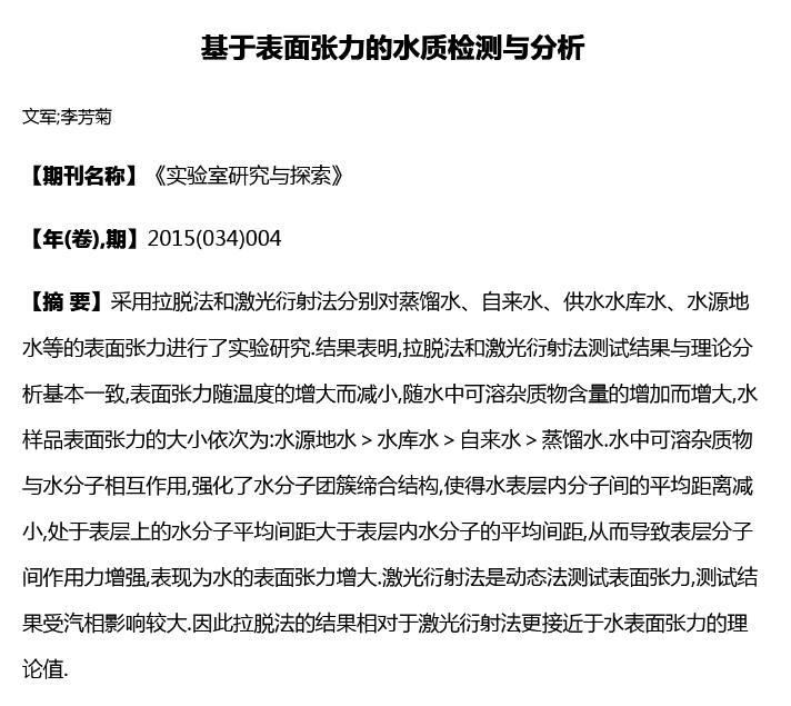 基于表面張力的水質檢測與分析