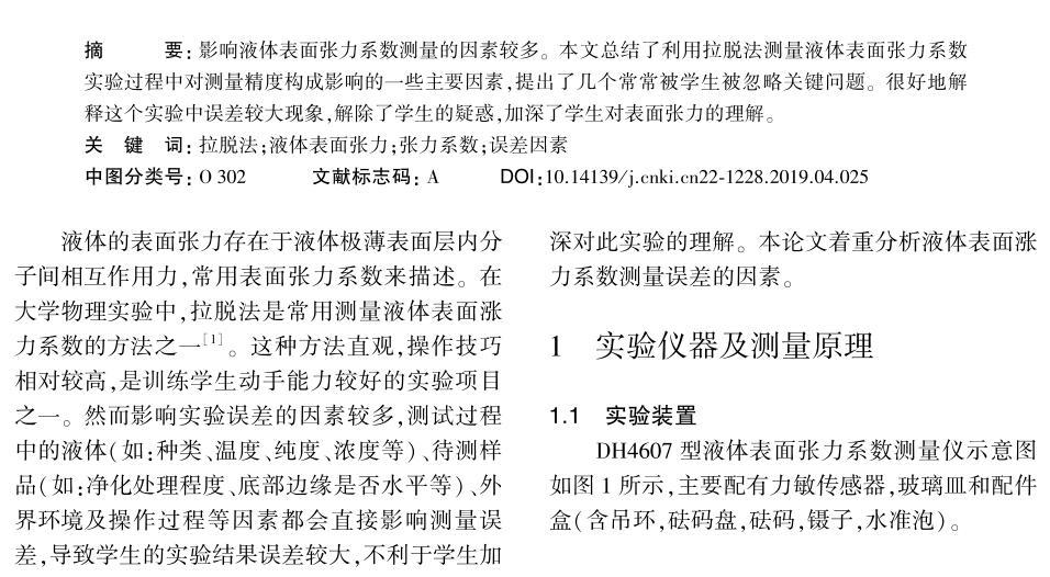 拉脫法測量液體表面張力系數(shù)的影響因素分析