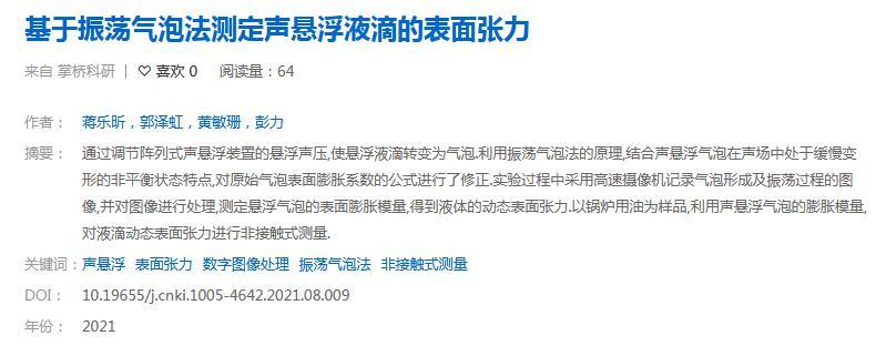 基于振蕩氣泡法測定聲懸浮液滴的表面張力