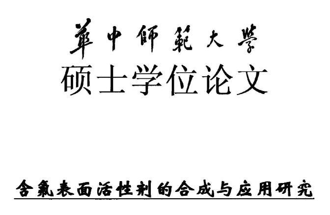 第二章以全氟己基磺酰氟和全氟丁基磺酰氟為原料,合成了一系列陰離子型含氟表面活性劑,用IR、MS、1HNMR等鑒定了所合成化合物的結(jié)構(gòu),研究了產(chǎn)物的表面張力,同時(shí)確定了臨界膠束濃度(CMC)。