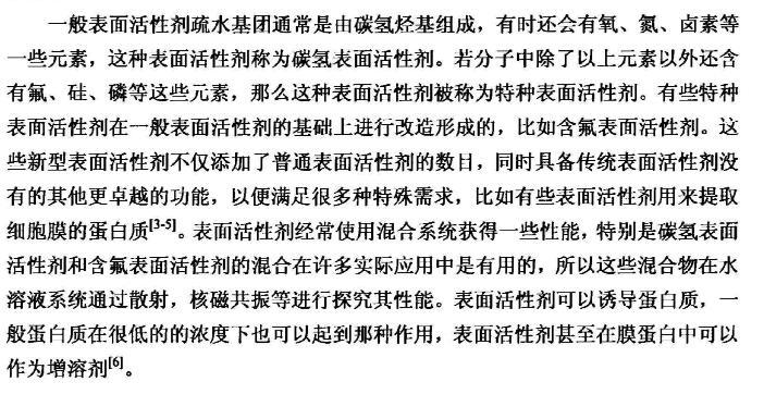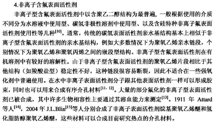【摘要】:本論文首先對(duì)新型含氟表面活性劑的特性,應(yīng)用領(lǐng)域,國內(nèi)外研究進(jìn)展進(jìn)行了全面的綜述。含氟表面活性劑是目前最受青睞的特種表面活性劑,相比于傳統(tǒng)的碳?xì)浔砻婊钚詣砻婊钚詣┑挠昧可伲档退芤罕砻鎻埩Φ淖饔脧?qiáng),同時(shí)可以跟其它表面活性劑起到很好的復(fù)配效果,可以應(yīng)用于消防、鉻霧抑制劑、造紙、冶金、起泡與消泡劑的合成等很多領(lǐng)域。