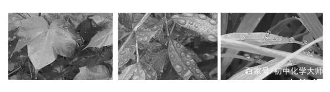 圖1.水在三種不同植物葉片表面的形態特征