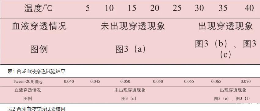 溫度和Tween-20用量對合成血液穿透試驗的影響