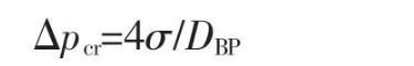 式中:DBP為篩網的有效孔徑,mm;Δpcr為篩網的泡破點值,kPa;σ為工作介質的表面張力,N。